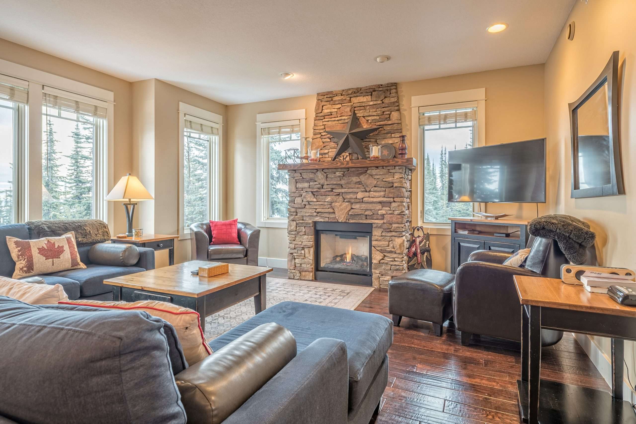 4 bedroom plus den, 2.5 bathroom vacation home. Backs right onto Alpine Chair.Details
